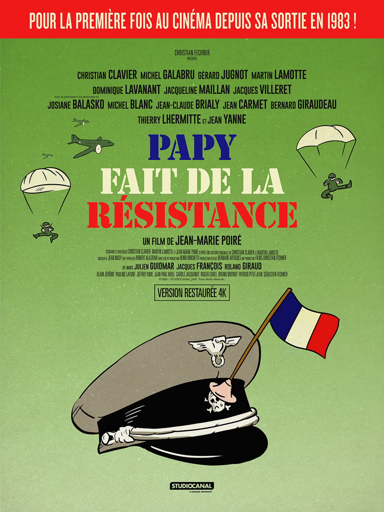 Adaptée de la pièce éponyme du Splendid, écrite par Martin Lamotte et Christian Clavier, Papy fait de la résistance est une comédie culte réalisée par Jean-Marie Poiré. Ce bijou du cinéma français revient dans une version restaurée en 4K, portée par un casting d’exception : Christian Clavier, Michel Galabru, Gérard Jugnot, Martin Lamotte, Dominique Lavanant, Jacqueline Maillan, Jacques Villeret, Josiane Balasko, Michel Blanc, Jean-Claude Brialy, Jean Carmet, Bernard Giraudeau, Thierry Lhermitte, Jean Yanne, Jacques François, Roland Giraud, Julien Guiomar…