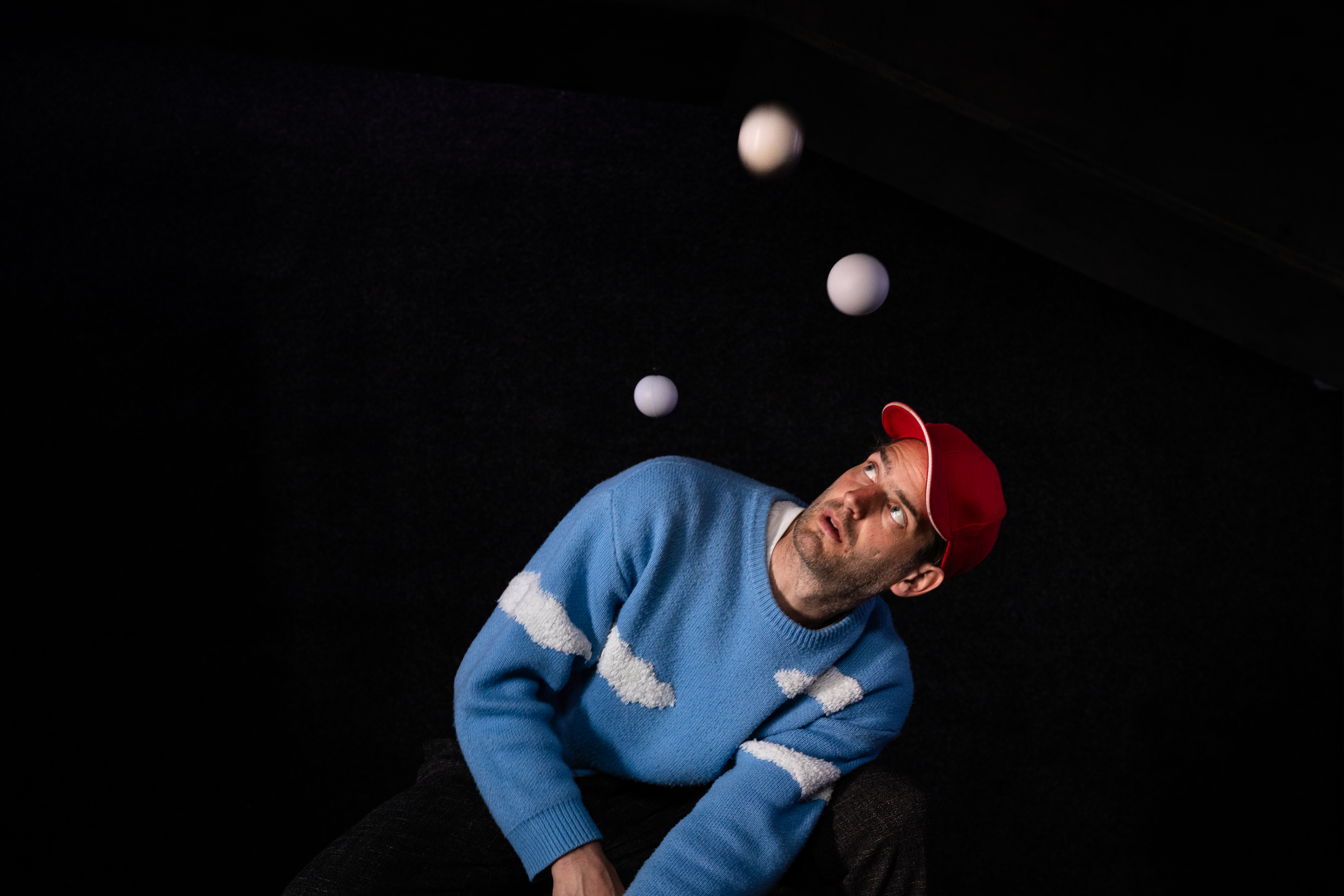 Dans un camion transformé en salle de spectacle, jonglerie et musique composent un monde magique. Un moment suspendu où le temps rebondit au rythme des balles et des sons.